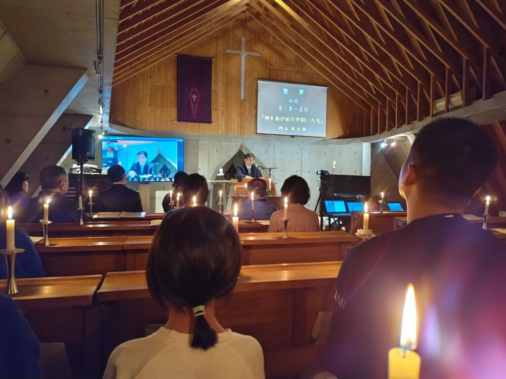 ロウソクの明かりで聖書を読み、賛美歌を歌います。